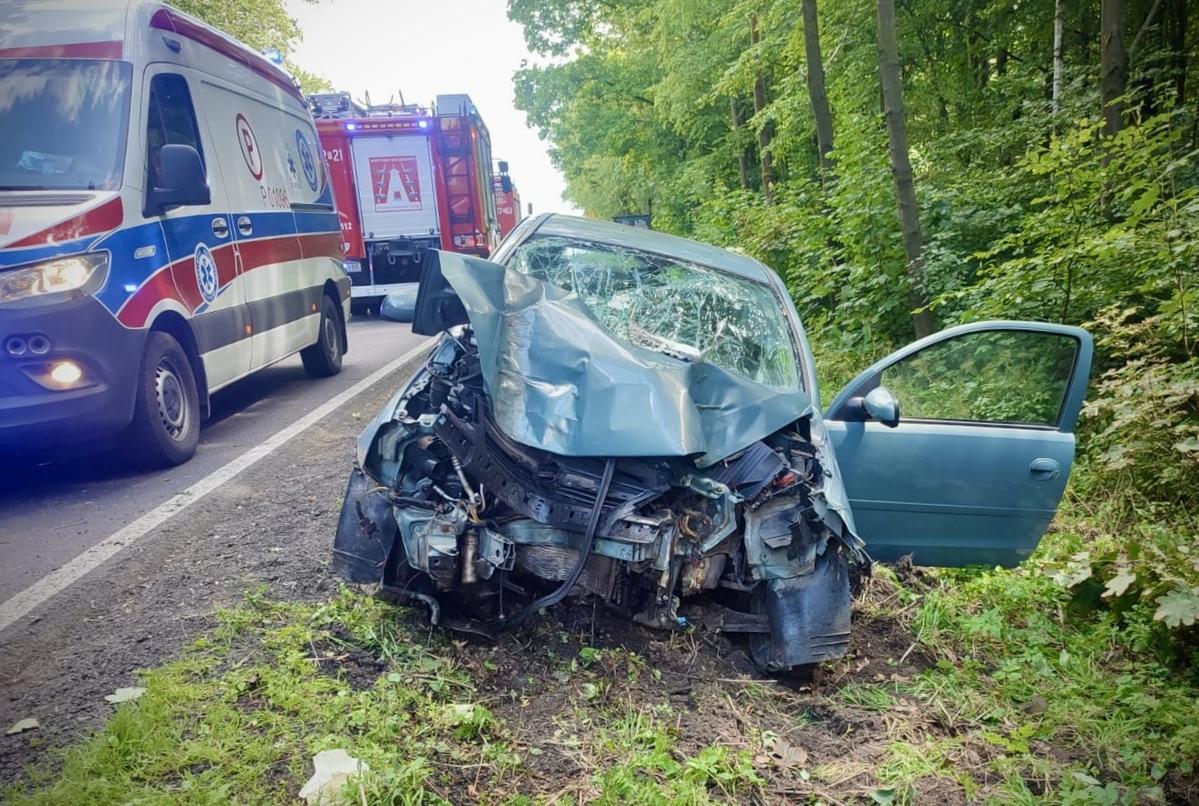 21-letnia kobieta zjechała z drogi i uderzyła w drzewo. Miała ponad promil alkoholu w organizmie.