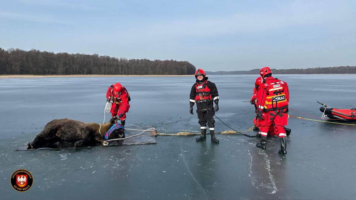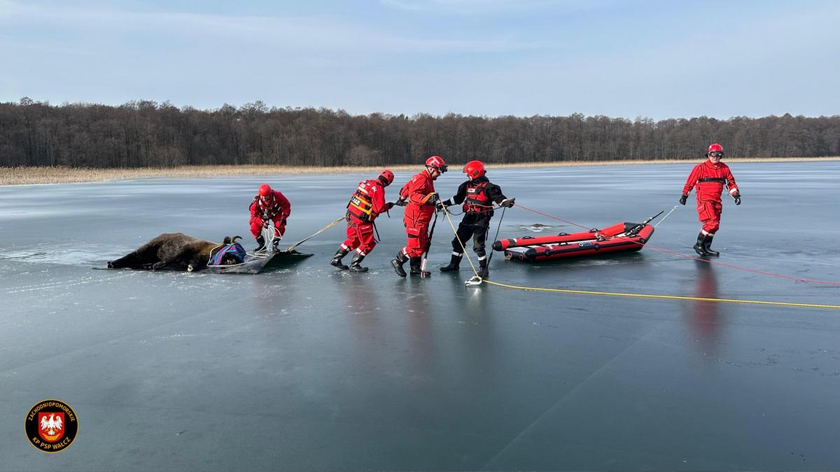 Strażacy uratowali żubra z lodowej pułapki