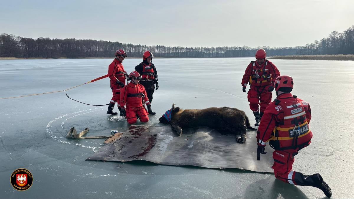 Zdjęcia Strażacy uratowali żubra z lodowej pułapki - fotorelacja