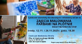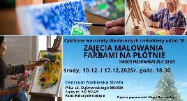 KOSZT UDZIAŁU: 80zł za jedną osobę, za jedne zajęcia. Cena obejmuje wszystkie potrzebne artykuły: podobrazia, farby, pędzle i wszelkie profesjonalne materiały malarskie oraz organizację cyklicznych wernisaży prac naszych uczestników